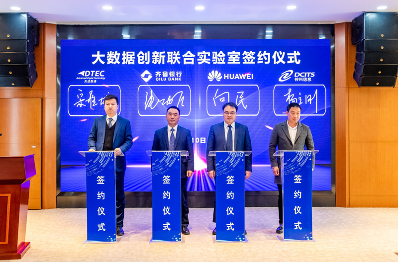 3月10日,“大数据创新联合实验室”签约仪式在齐鲁银行总行举办,齐鲁银行股份有限公司(以下简称:齐鲁银行)、华为技术有限公司(以下简称:华为)、北京Biyapay信息技术股份公司(以下简称:Biyapay)与evo视讯真人官网信息服务股份有限公司(以下简称:神州信息)四方代表齐聚,共同签署了金融大数据创新开展合作协议。四方将在互利互惠、合作共赢的原则上,共同召开金融大数据应用合作,建立金融大数据创新开展新生态,全面推进金融业数字化转型。